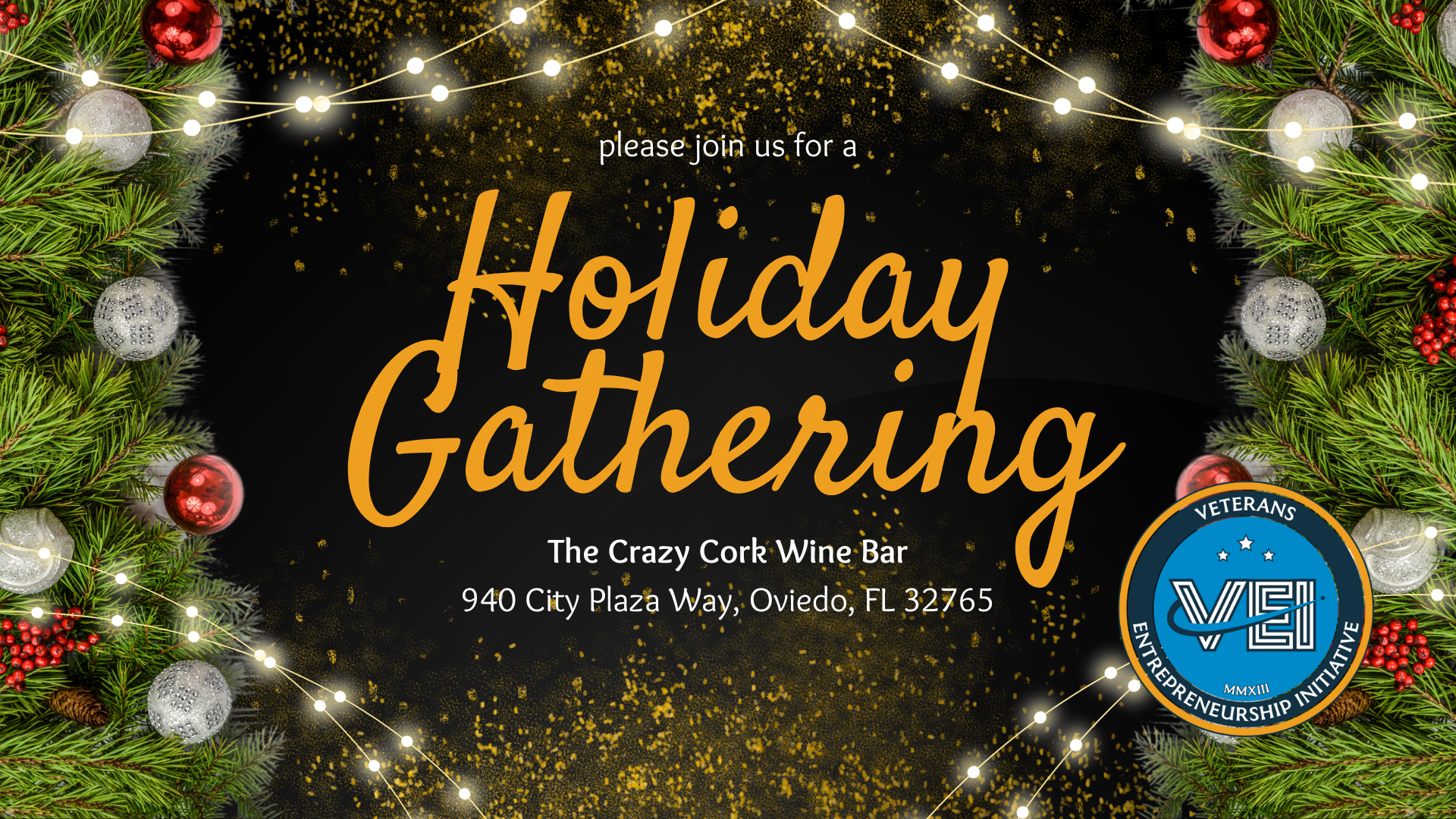 Come join us for a festive holiday gathering at The Crazy Cork Wine Bar! Let’s celebrate the holiday season together with good company, delicious drinks, and lots of cheer. Don’t miss out on this chance to make merry memories with your VEI family. Space is limited, so RSVP as soon as you can to reserve your seat. Drink tickets will be available.