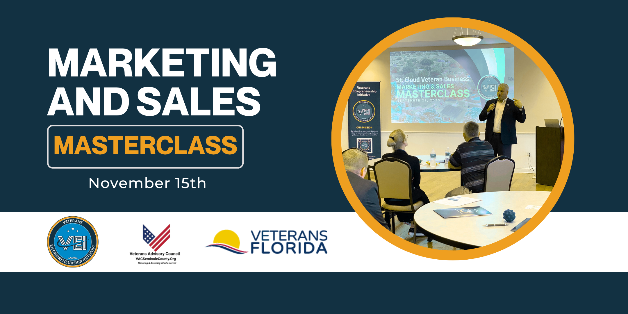 National Entrepreneur Center 3201 E. Colonial Drive, Suite A20, Orlando, FL, United StatesMarketing & Sales Masterclass Presented by the Veterans Entrepreneurship Initiative, Veterans Florida, and the Seminole Veterans Advisory Council Join us for the Marketing & Sales…